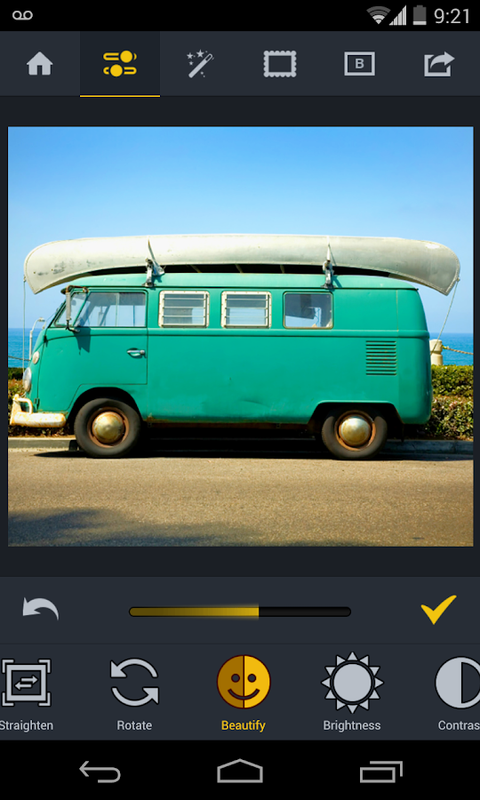 Vintage, Pop Art, Grunge, Viewfinder, DuoTone, Toy Camera, Sketch, Tilt Shift, Instant, Old Photo, Cross Process, Cyanotype, Gritty HDR, Pinhole, Orton, dan banyak lagi. terdapat juga bermacam-macam frame seperti Filmstrip, Halftone, Grunge, Classic frames dll. dan dilengkapi alat-alat edit seperti Crop, straighten, rotate, sharpen, add text (dengan bermacam-macam font dan warna) and add vignetting to any photo, ada spesial fitur alat edit di aplikasi ini seperti Beautify (percantik) dan fill light (isi cahaya) dan tak ketinggalan pula tombol sosial network shared dan masih banyak lagi......